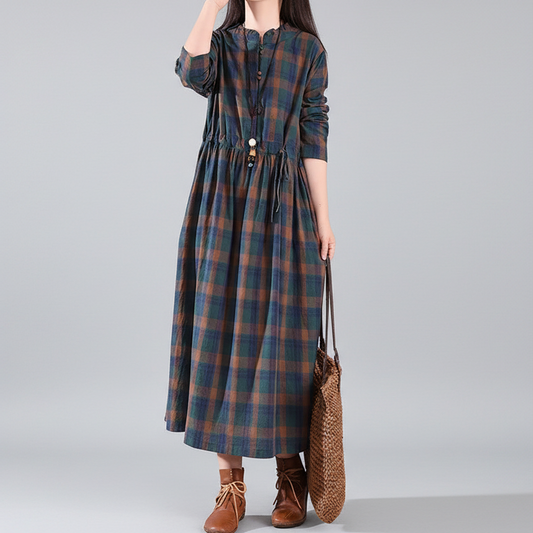 Long-Sleeved Plaid Maxi Dress