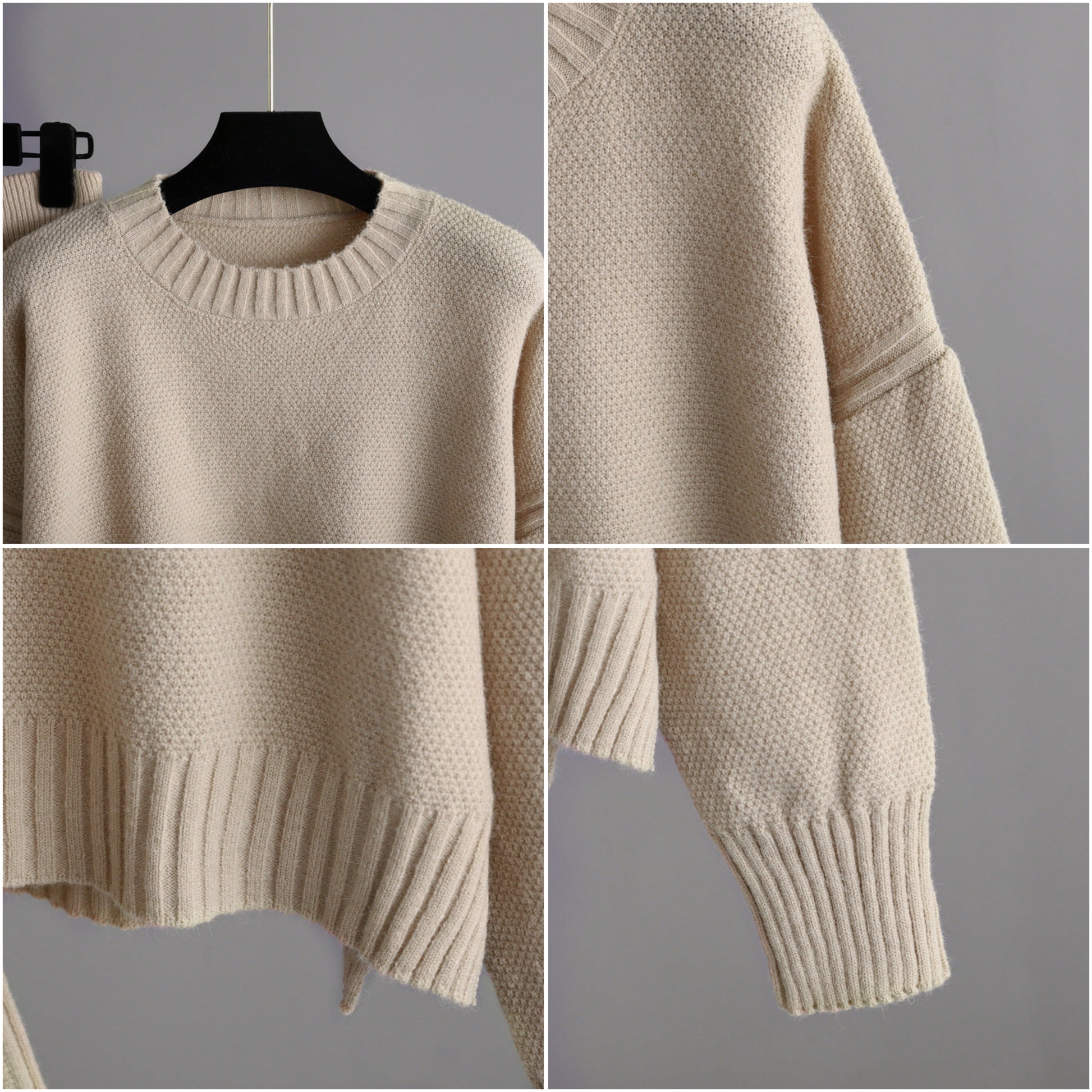 Effortlessly stylish and comfortable, this two-piece knit set features a loose-fitting sweater with a round neckline and long sleeves paired with high-waisted, wide-leg pants. The soft, stretchy and durable lycra fabric drapes beautifully while ribbed cuffs and hem add refined detail. Perfect for lounging at home or casual outings, whether you're running errands, shopping, or meeting friends. The drawstring waist ensures an adjustable, flattering fit for all-day wear.