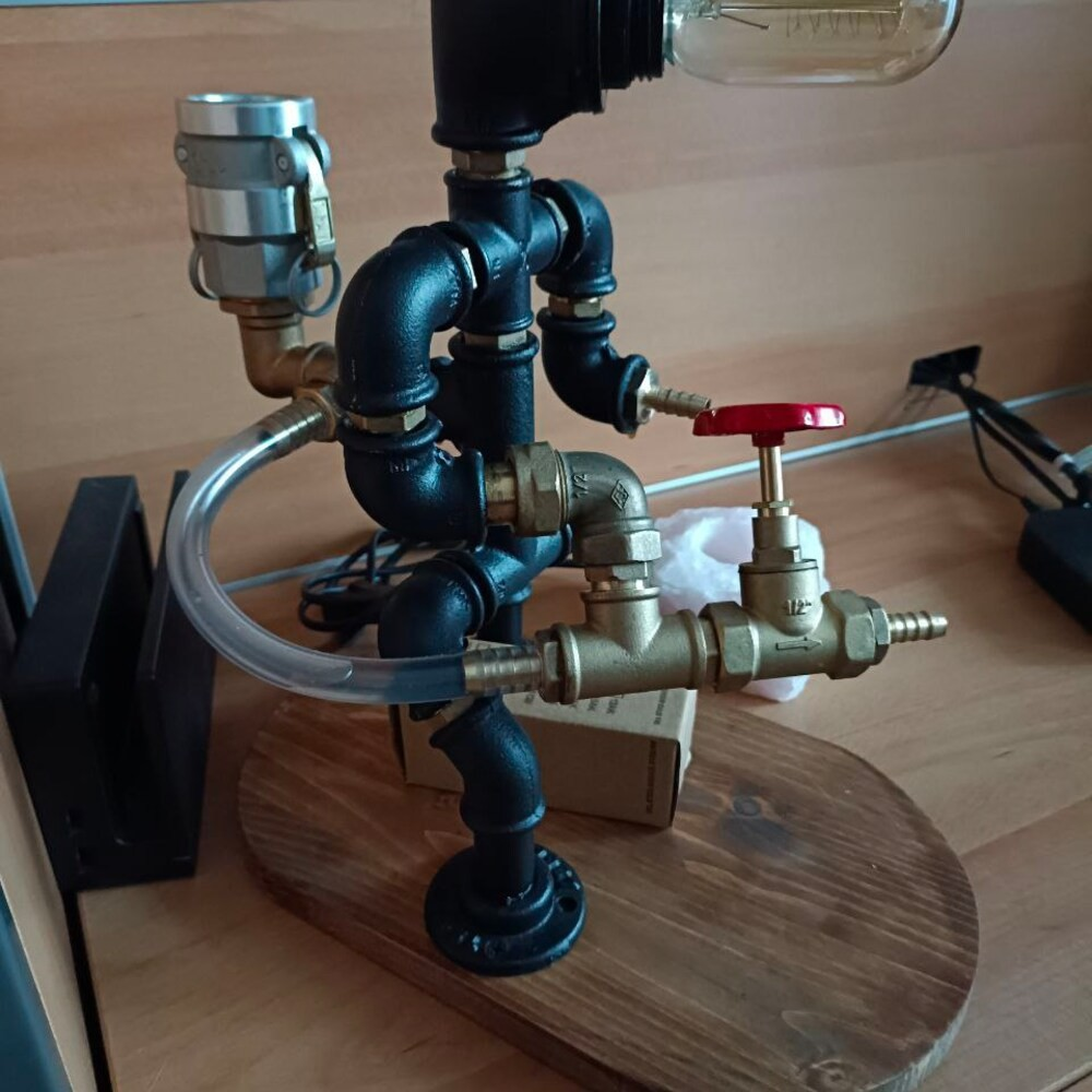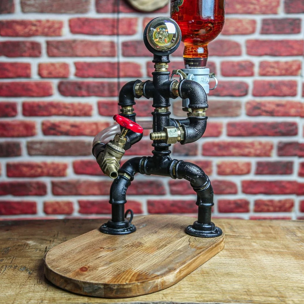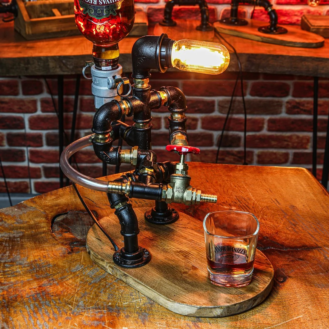 Transform your entertaining space with this handcrafted steampunk dispenser, a striking fusion of Victorian sophistication and industrial innovation. Built from premium materials including galvanized iron, brass, and stainless steel mounted on a sturdy wood foundation, this piece combines durability with distinctive style. The intuitive valve-and-faucet system makes pouring effortless, while food-safe brass components protect your beverages. Ambient Edison bulb lighting sets the mood for unforgettable gatherings. Whether you're a steampunk enthusiast or simply seeking a functional art installation that commands attention, this handmade accessory delivers character and practicality in one compelling package.