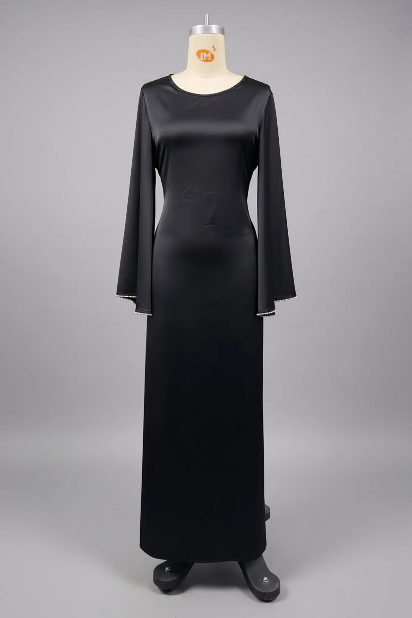 This fabulous abaya brings the perfect mix of modest charm and modern flair. Silver chains adorning the cuffs and sleeves add a touch of personality to this timeless piece, while the premium heavyweight crepe fabric creates a gorgeous, flowing silhouette. Style it loose for effortless sophistication or belt it up to highlight your curves. Versatile, comfortable, and undeniably stylish.