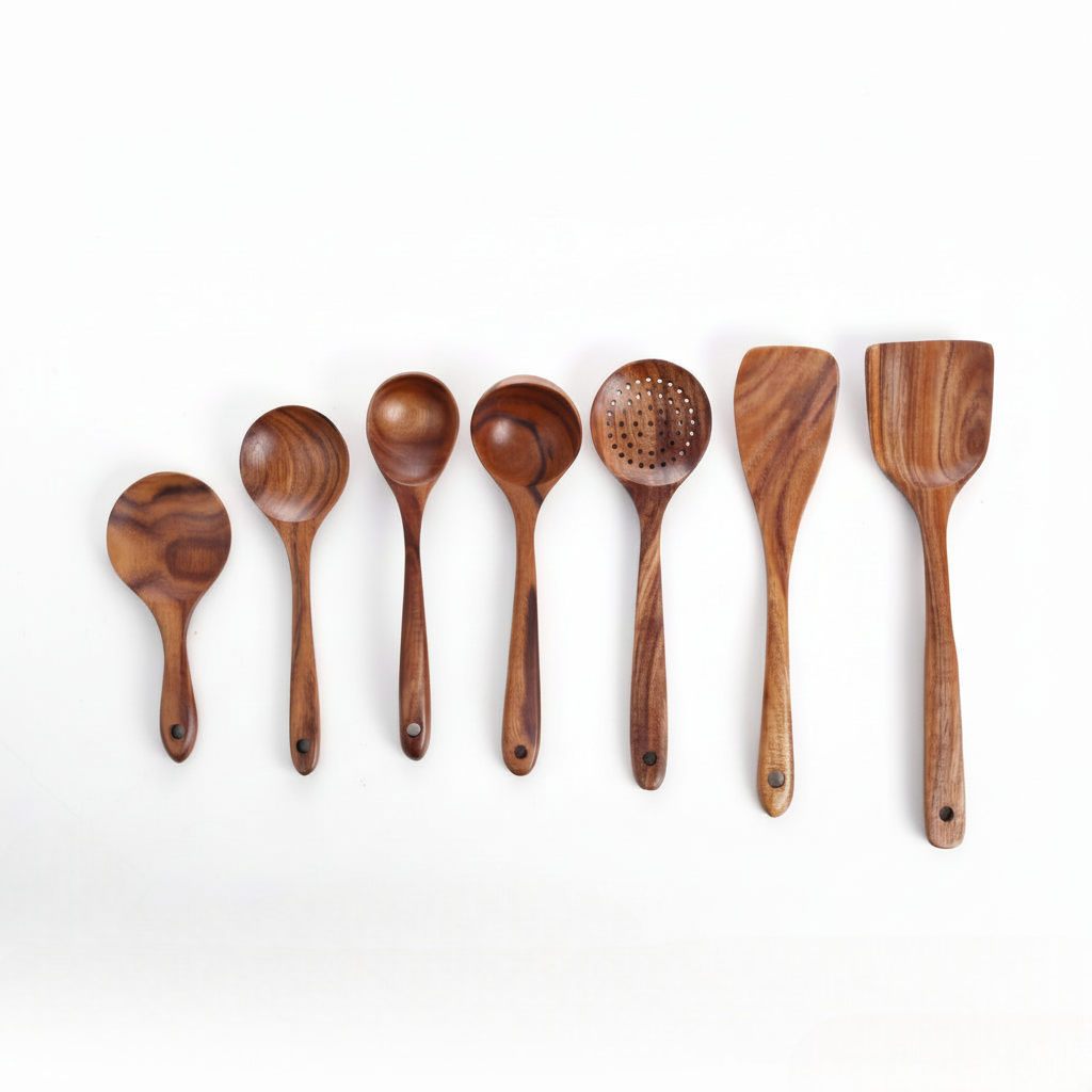 7-Piece Handmade Teak Wood Kitchen Utensil Set