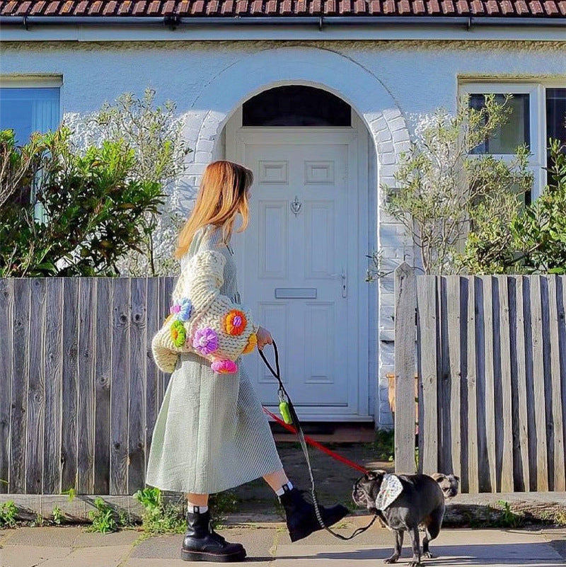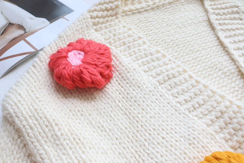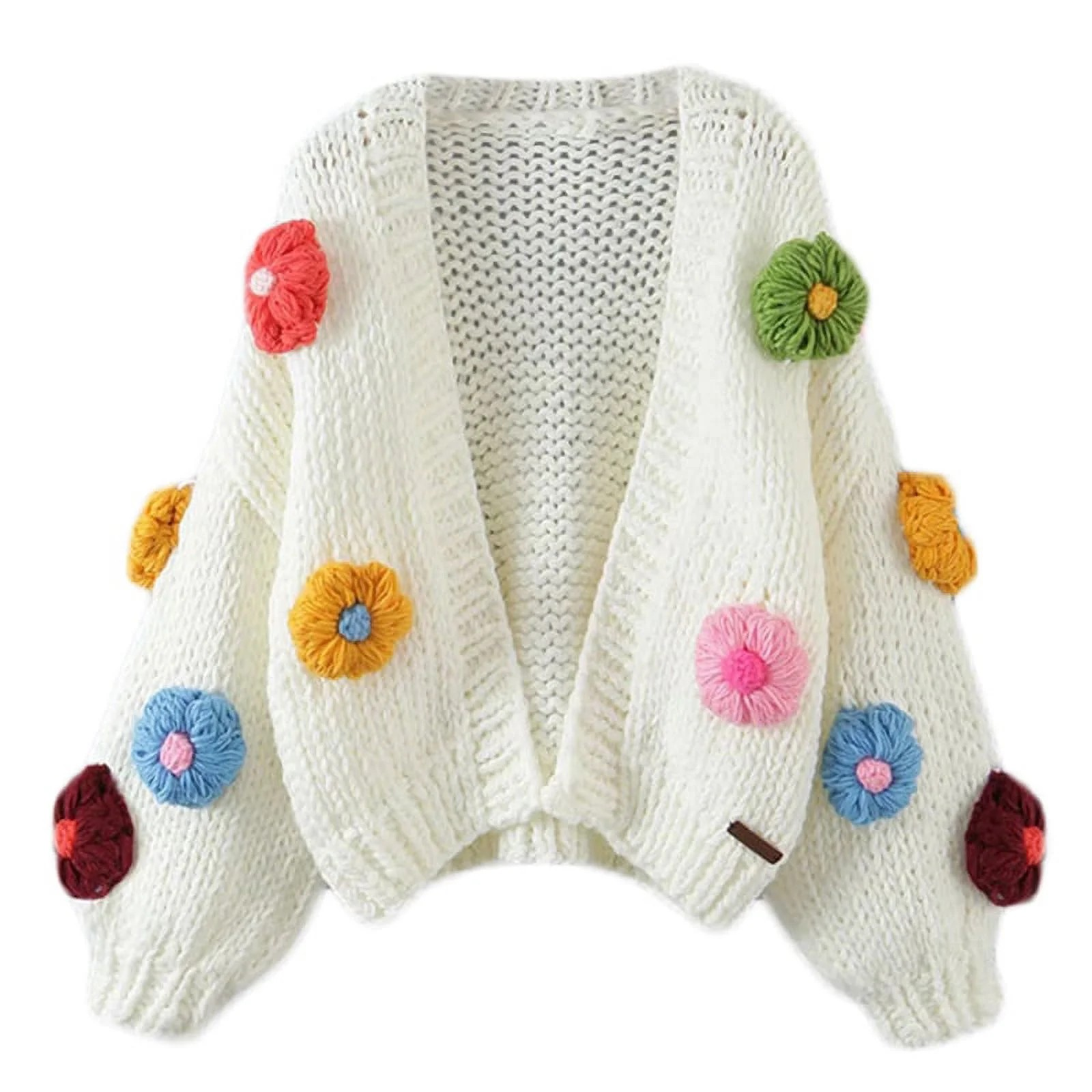 Slip into whimsy with this delightfully oversized cardigan that celebrates bold self-expression. Featuring statement balloon sleeves and dimensional crochet flowers in vibrant hues, it's a nostalgic nod to vintage charm with a contemporary edge. The cropped, open-front silhouette pairs effortlessly with everything from denim to dresses, making it the perfect layer for adding personality to any outfit.