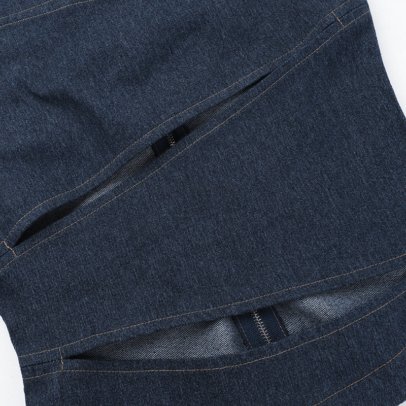 Turn heads with this denim tank that's all about strategic cutouts and confident style. The sleeveless, fitted silhouette features bold horizontal slashes across the chest and midriff that add serious visual impact. Made from premium denim that's tough enough to last but soft enough to feel amazing, this piece is designed to hug your curves just right. Perfect for anyone ready to make a statement with their streetwear game.
