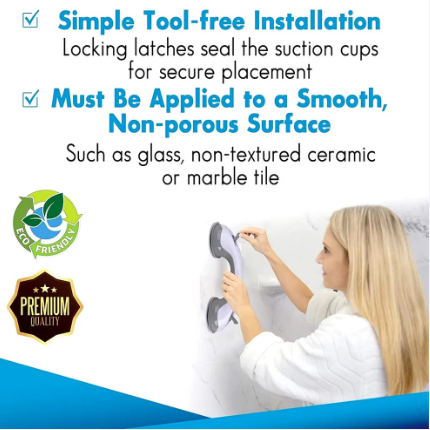 This portable safety handle delivers reliable support wherever you need it most. Engineered with industrial-strength suction cups and flip-up locking tabs, it adheres securely to any smooth, non-porous surface in seconds. No installation, drilling, or wall damage required. The ergonomic grip provides stable leverage to reduce fall risk in bathrooms, showers, and high-traffic areas prone to moisture or instability. Ideal for aging in place, post-injury recovery, or enhancing safety near stairs, toilets, and seating areas. A practical, damage-free solution for maintaining independence and confidence throughout your home.