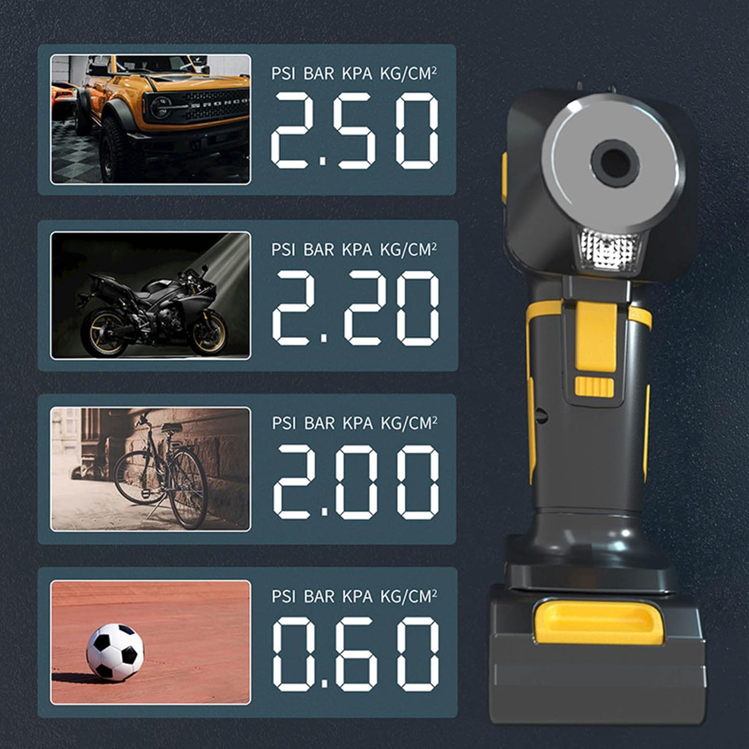 Automatic shut-off & Digital display: It features a digital display to monitor real-time tire pressure and a smart auto-shutoff function that stops inflation once the preset pressure is reached, preventing over-inflation.
