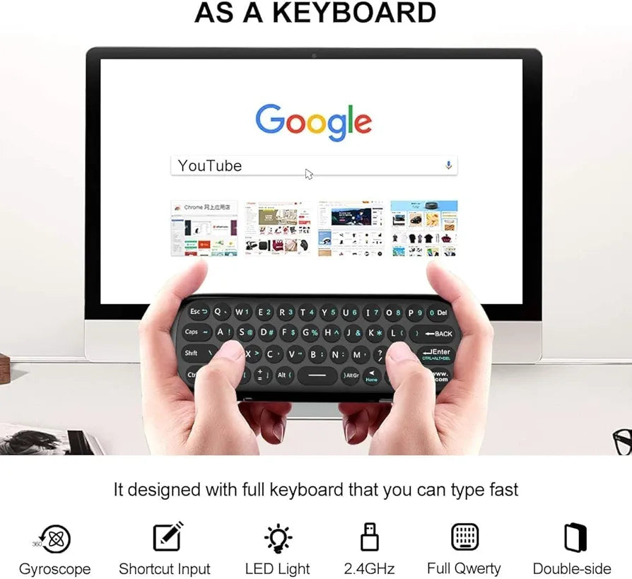 2.4G 3D Air Mouse Remote Control with Built-In Keyboard for Smart TV, Android TV Box, Mini PC, Projector, HTPC, All-in-one PC/TV