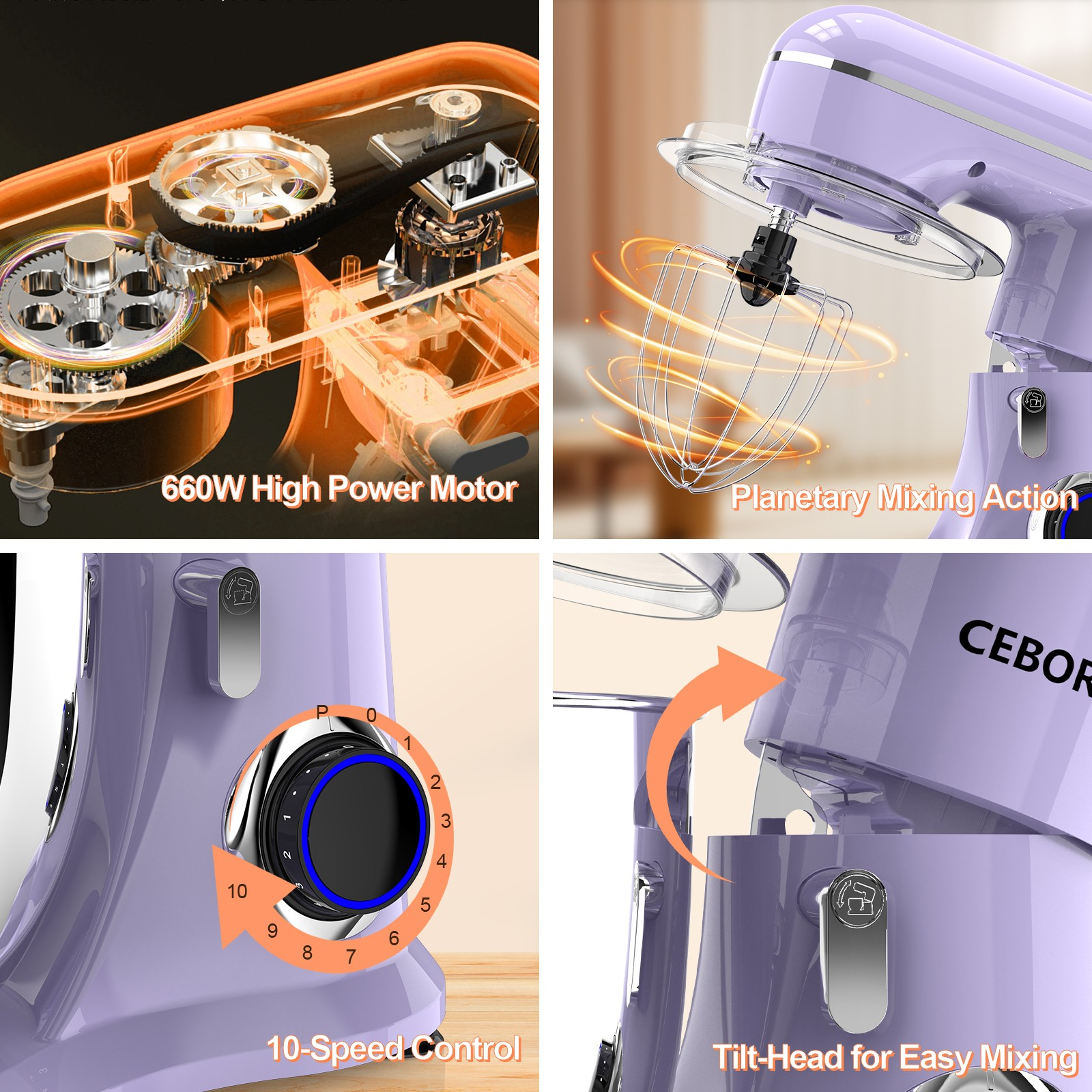 CEBORY 3-in-1 660W 10-Speed Stand Mixer – 6.5QT