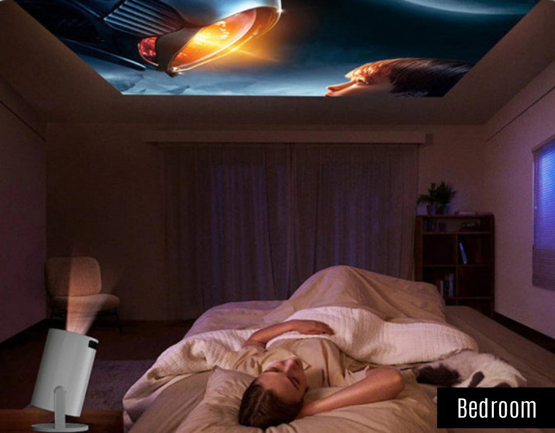 - Design: Cylindrical design with a 180° rotating stand for flexible projection angles.