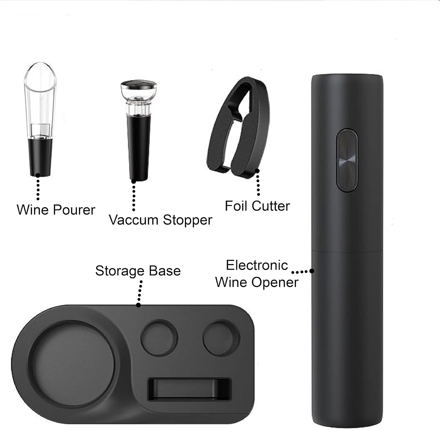 5-in-1 Electric Wine Set with Opener, Pourer, Vacuum Stopper, Foil Cutter and Storage Base