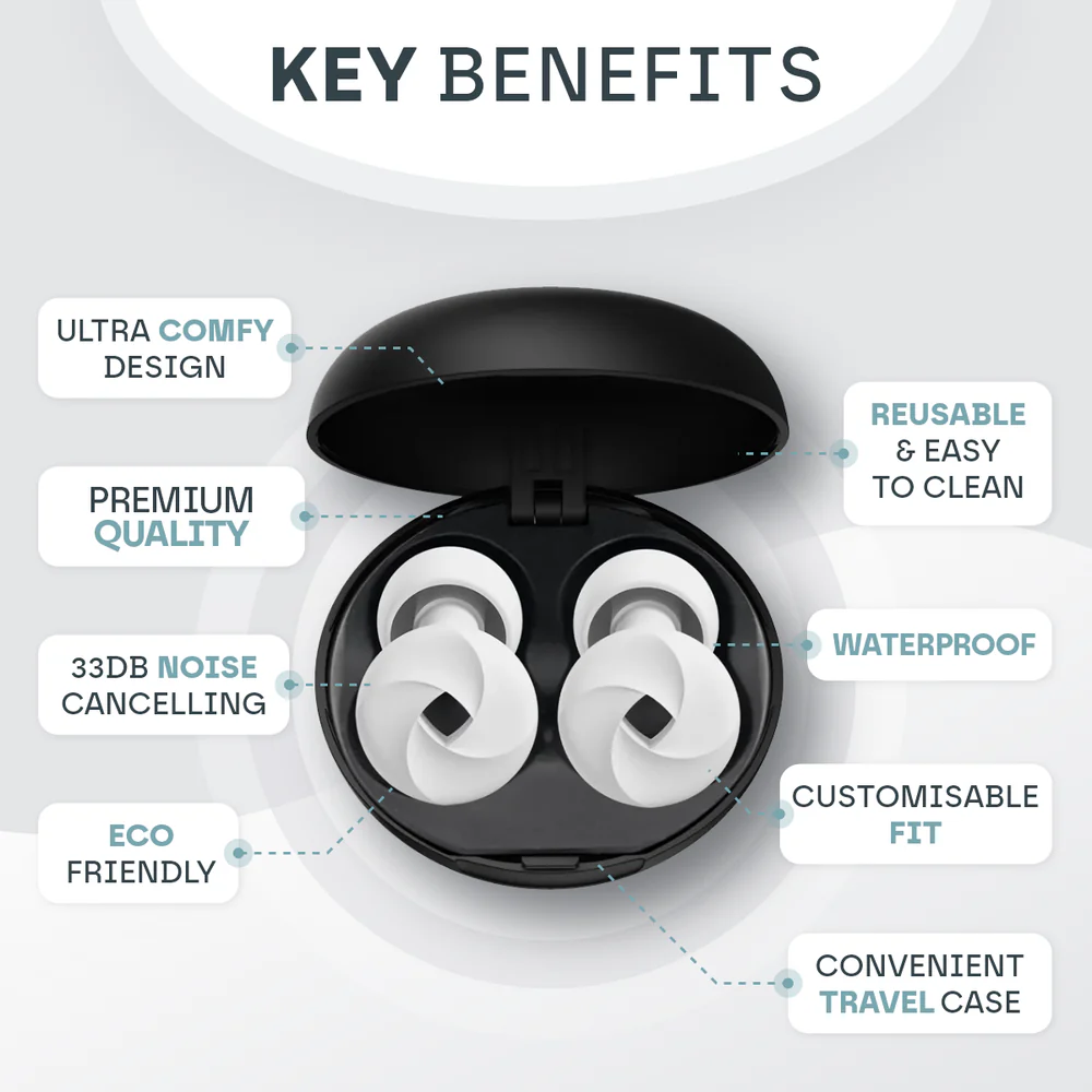This professional-grade earplug system delivers reliable noise attenuation across diverse applications, from sleep and study sessions to workplace environments and live performances. The four-size configuration (XS, S, M, L) accommodates varying ear tip sizes, ensuring optimal acoustic seal and comfort for extended wear. Engineered from durable silicone, these earplugs provide consistent sound blocking while maintaining breathability. The included carrying case preserves hygiene and portability, making this solution practical for frequent travelers and shift workers alike. Ideal for anyone requiring dependable hearing protection without compromising comfort or accessibility.