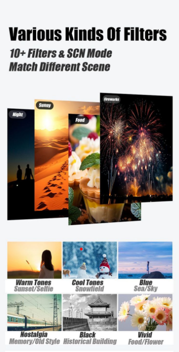 • Includes 20 built-in beauty filters.