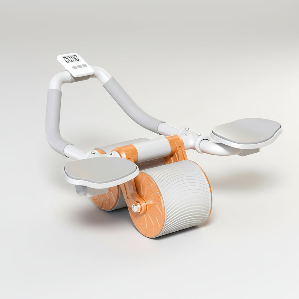 Get ready to roll your way to serious core strength with this game-changing ab roller! The automatic rebound technology bounces back to protect your muscles while keeping your movements smooth and controlled. Perfect for beginners who want results without the ouch. Wide, super-stable wheels let you glide forward, backward, and side-to-side without any tippy-tappy wobbling. The built-in elbow support keeps your joints happy during those intense sessions, while the timer keeps you honest about your progress. Bonus: it comes with a kneeling pad for comfort and a phone holder so you can watch workout videos or scroll between sets. Compact enough to stash anywhere, powerful enough to transform your midsection, this is the ab roller that actually makes fitness fun.