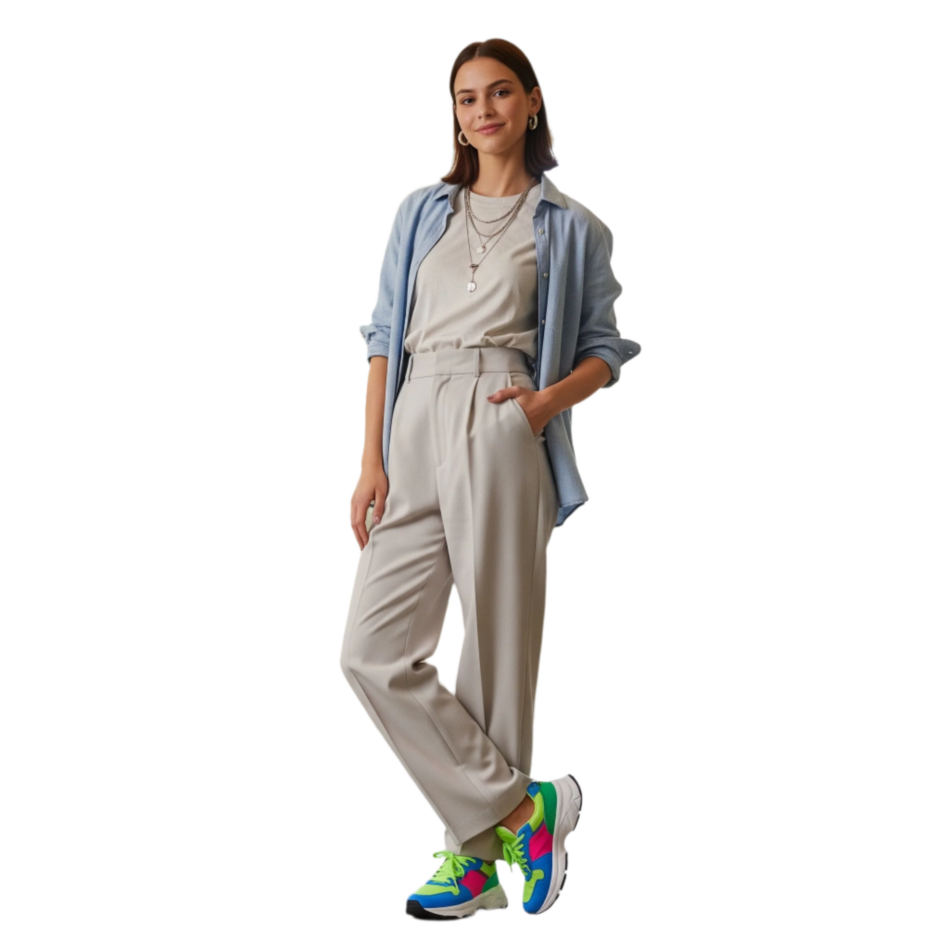 For casual office vibes, rock these sneakers with pants, pencil skirts, or jeans. Finish off with a button-down, cozy sweater, or silky top for a look that’s both sharp and comfy.