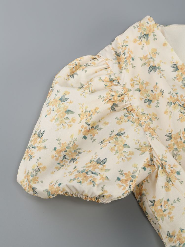 Puff Sleeve Floral Print Mini Dress