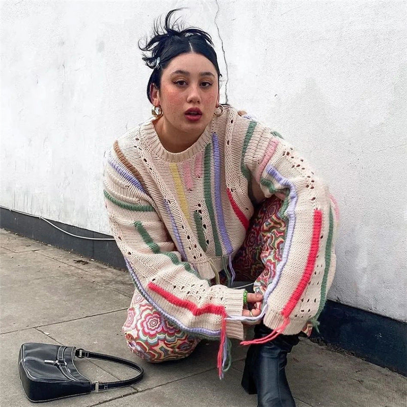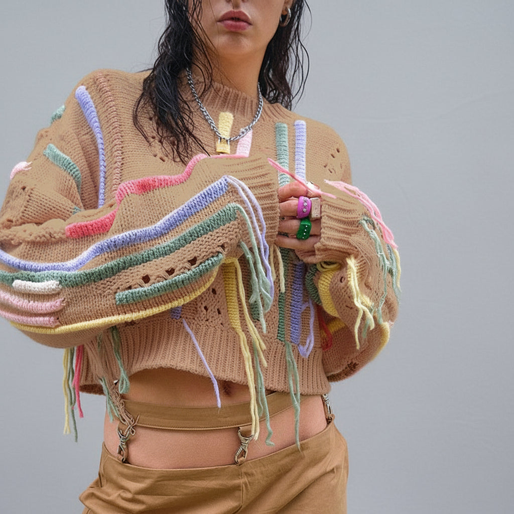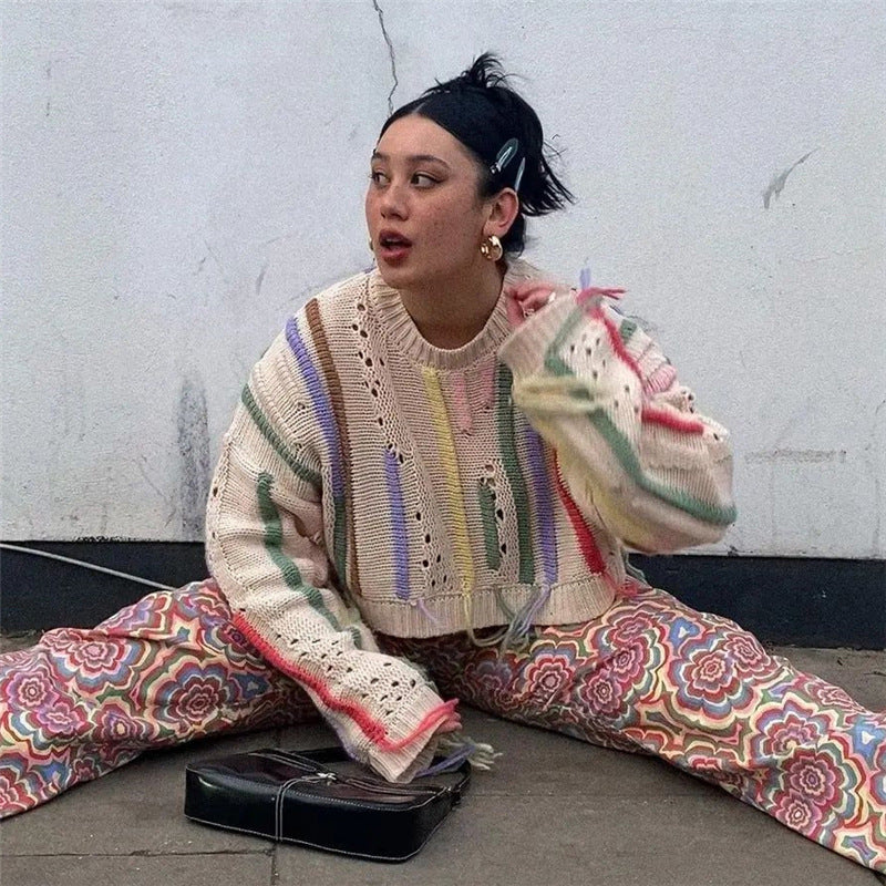 Distressed Cropped Knit Sweater