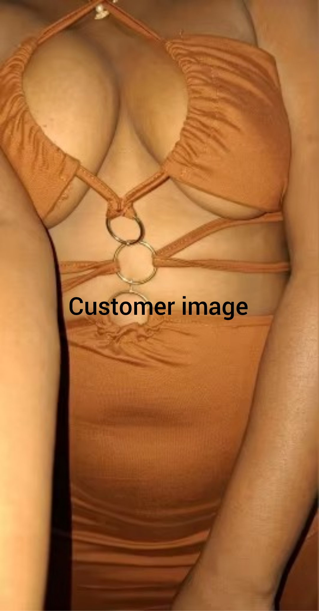 Allure meets elegance in this bodycon dress - a perfect choice for those who love sophistication and sexiness. The slimming silhouette highlights curves, while the side slit and metal ring bandage add a playful touch with a provocative side boob detail. It's sleeveless for ultimate comfort and freedom of movement, perfect for dancing the night away at parties. A must-have for any club or party, this dress will surely grab attention and make a statement.