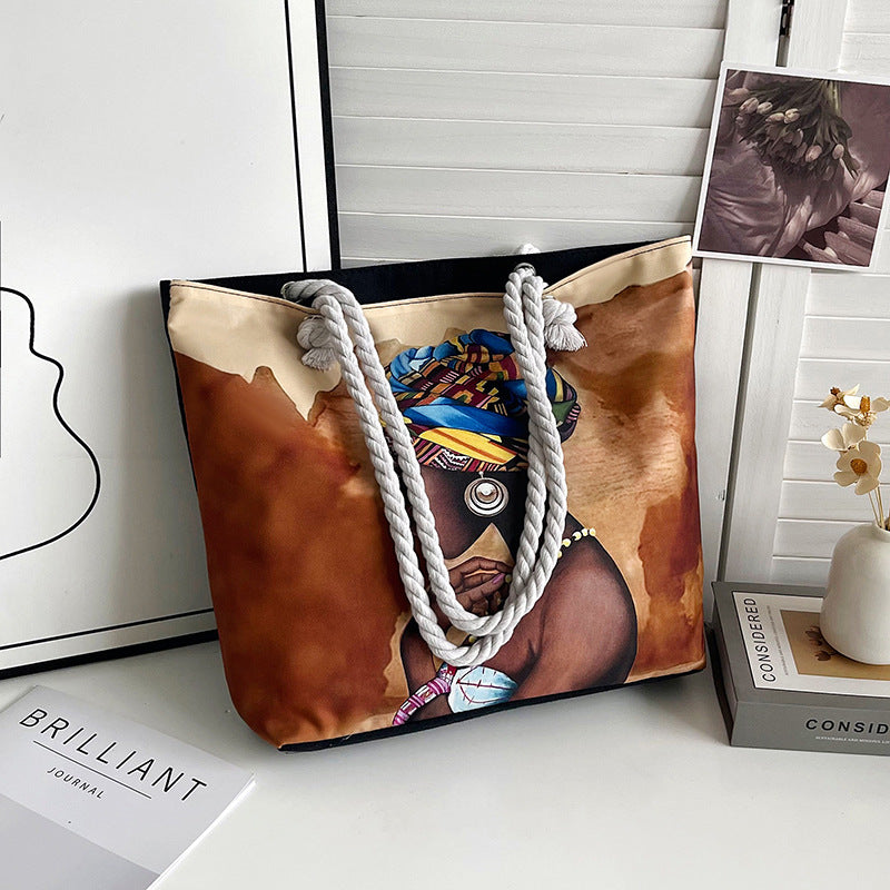 Carry your essentials in style with this spacious canvas tote, showcasing a striking illustration celebrating Black women and cultural identity. The durable canvas construction handles daily wear, from groceries to laptops, while the bold, Afrocentric artwork makes a statement. Perfect as a versatile shoulder bag for shopping, beach outings, or everyday use, this large-capacity design combines artistic expression with practical functionality for those who value both substance and cultural representation.