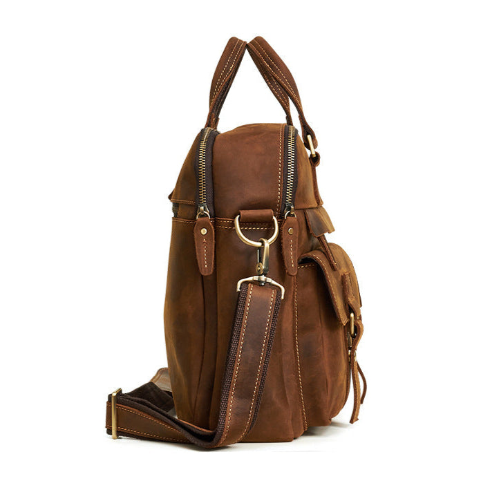 Men's Genuine Crazy Horse Leather Business Briefcase, Waterproof & Wear-Resistant