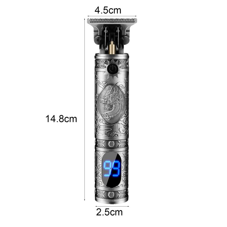This product is expertly crafted for accurate hair trimming, grooming of beards and mustaches, and intricate styling. Its features include a sleek all-metal body, an LCD display that shows battery capacity, and durable titanium steel blades. It can be operated cordlessly with a built-in 1500mAh or 2000mAh rechargeable lithium battery, and has a run time of 300 minutes (5 hours) after a full charge. It also offers quick USB charging, taking only 2.5 to 3 hours for a full charge.