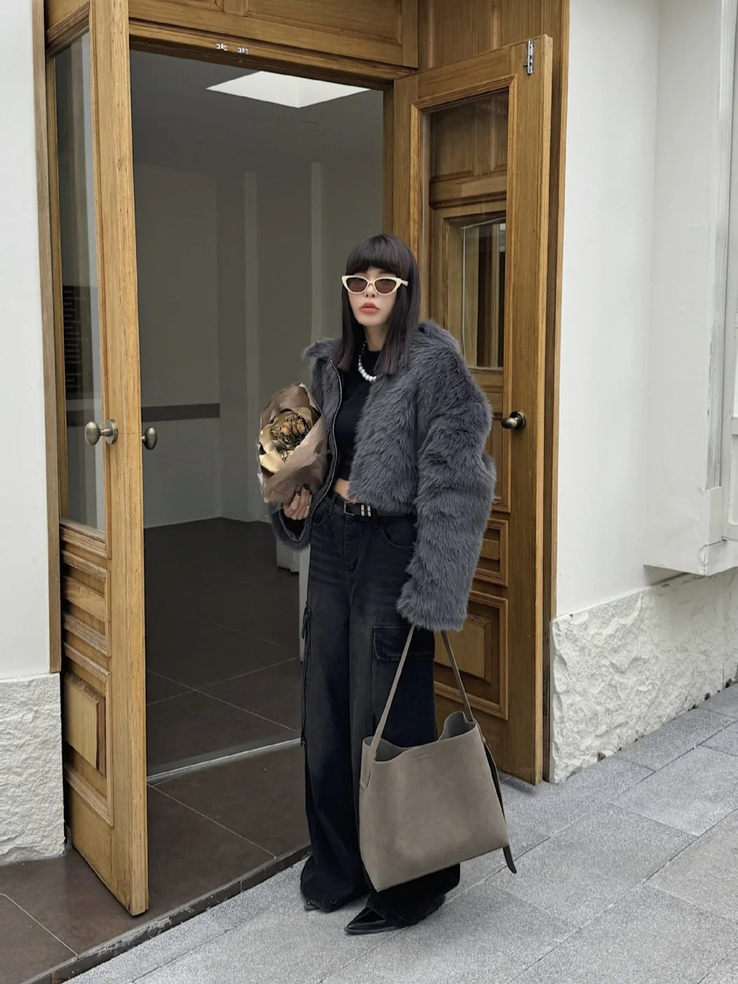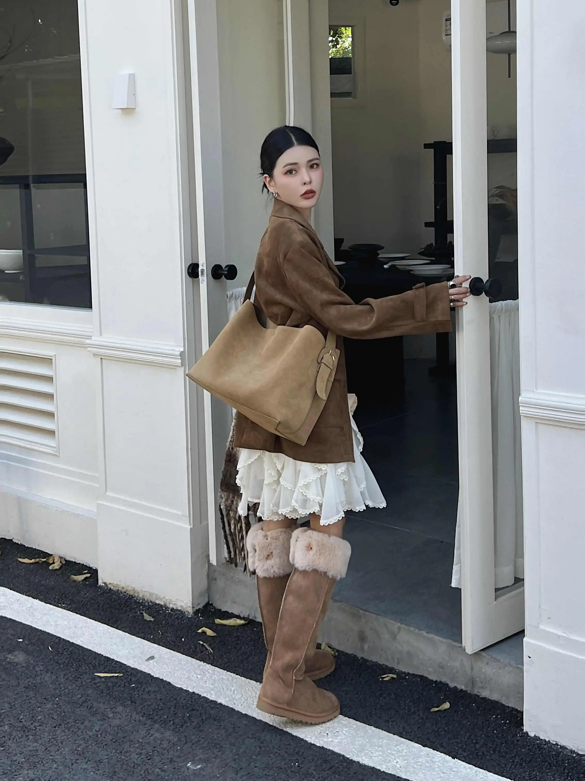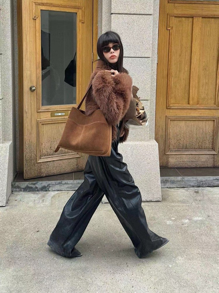 Retro Suede Slouchy Tote Bag
